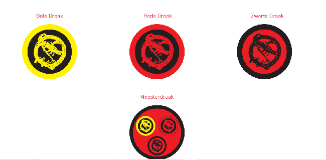 De volgende cirkel is die van de Rode Draak. Ze staat voor een grotere kennis en harmonie. Ze geldt voor de zwarte gordels 3de- en 4de dan.
